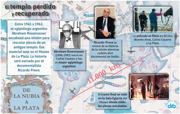 A principios de los ‘60 unos muchachos de Liverpool se juntaban a tocar unos temas. Mientras tanto, a muchos kilómetros de allí un egiptólogo revisaba un templo mandado a construir nada menos que por Ramsés II, el vengativo faraón del Éxodo bíblico. Había que salvar paredes e inscripciones, ya que en poco tiempo una gran represa dejaría todo bajo las aguas. Gran parte de ese material terminaría en el Museo de Ciencias Naturales de La Plata, gracias a ese sabio nacido en una colonia judía de Carlos Casares. Es la historia -prácticamente ignorada por el gran público- del doctor Abraham Rosenvasser, que será narrada por el director Ricardo Preve en su documental “De la Nubia a La Plata”.